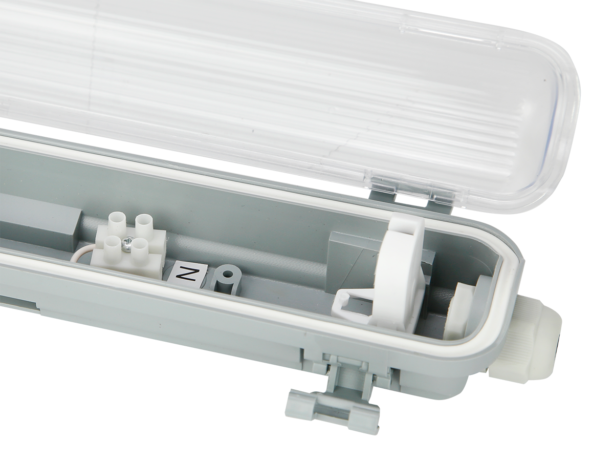 Zeer scherp geprijsde spatwaterdicht (IP65) LED TL armatuur 120cm. Armatuur is gemaakt van zeer stevig Polystyreen en ABS kunststof met RVS bevestigingsmaterialen en kunststof sluitclips. Het led armatuur wordt geleverd met; kunststof sluitclips, RVS montagebeugels, zakje met bevestigingsmateriaal en één wartel PG11 met moer.