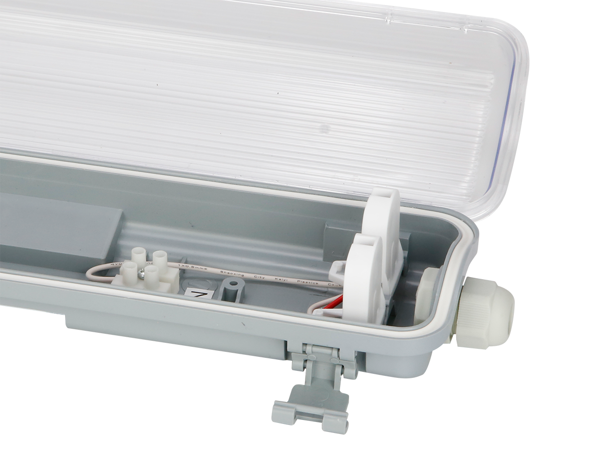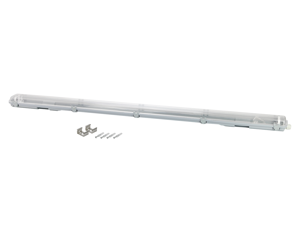 Zeer scherp geprijsde spatwaterdicht (IP65) LED TL armatuur 150cm. Armatuur is gemaakt van zeer stevig Polystyreen en ABS kunststof met RVS bevestigingsmaterialen en kunststof sluitclips. Het led armatuur wordt geleverd met; kunststof sluitclips, RVS montagebeugels, zakje met bevestigingsmateriaal en één wartel PG11 met moer.