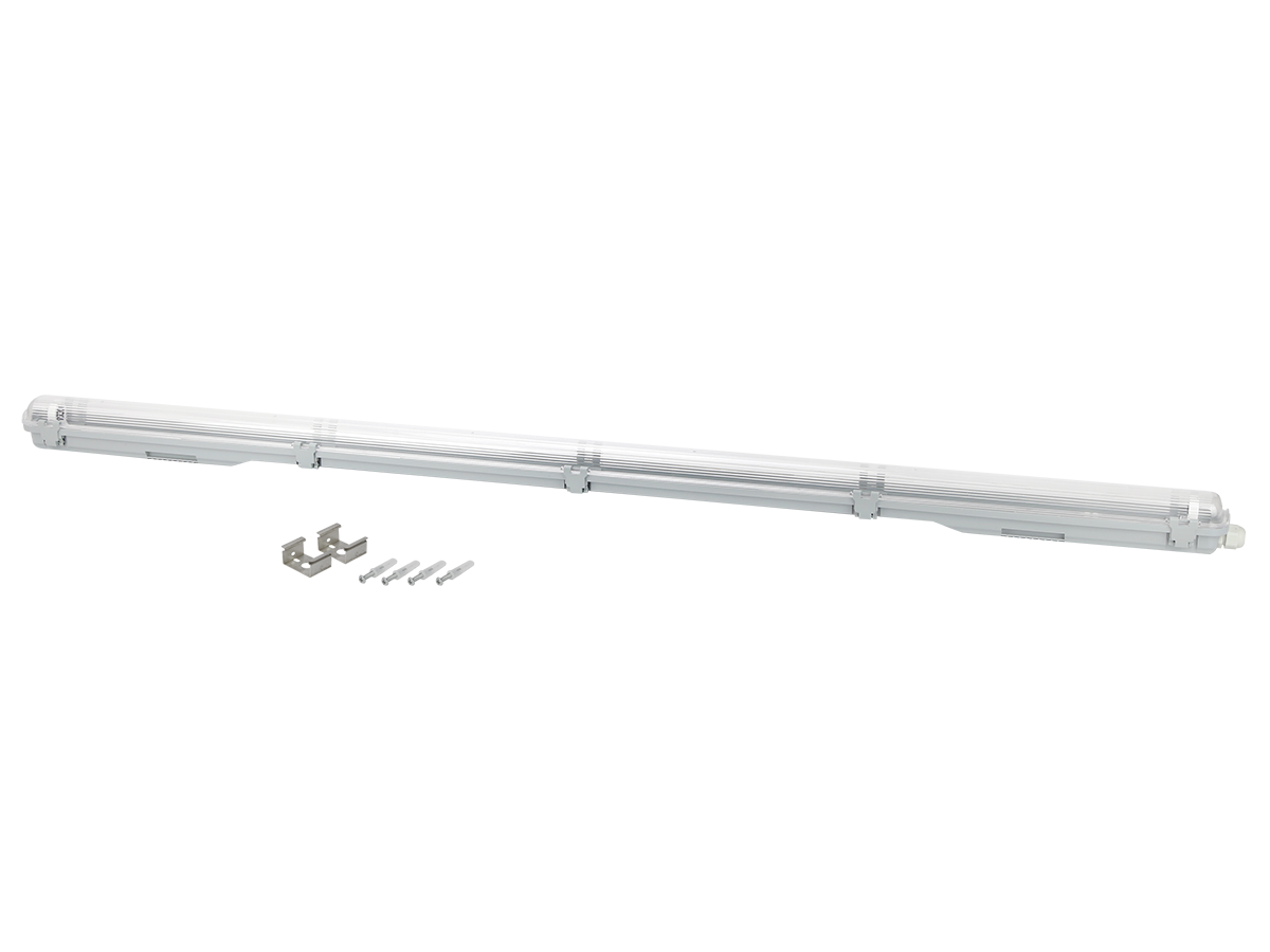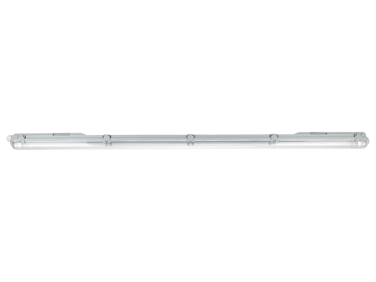 Zeer scherp geprijsde spatwaterdicht (IP65) LED TL armatuur 150cm. Armatuur is gemaakt van zeer stevig Polystyreen en ABS kunststof met RVS bevestigingsmaterialen en kunststof sluitclips. Het led armatuur wordt geleverd met; kunststof sluitclips, RVS montagebeugels, zakje met bevestigingsmateriaal en één wartel PG11 met moer.