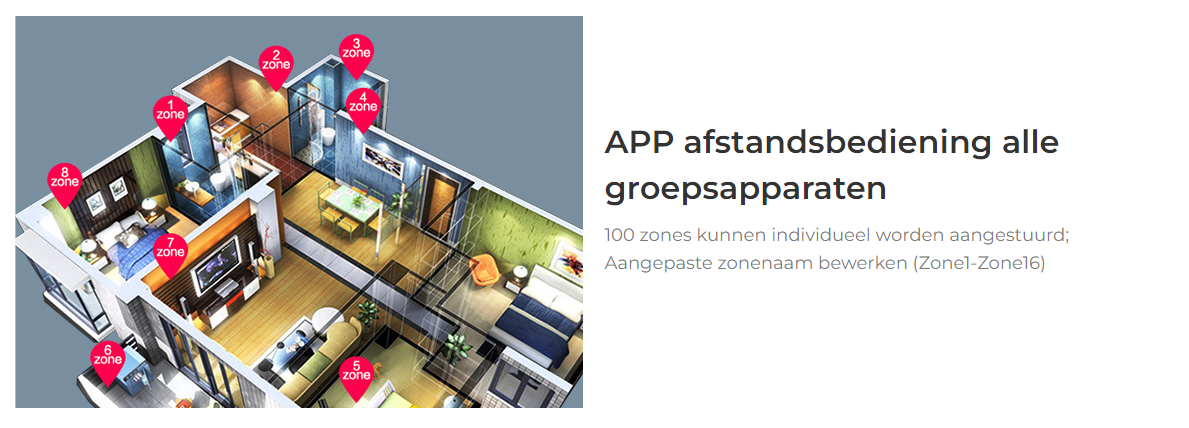 Per virtuele afstandsbediening in de Wifi APP kunt u meerdere groepen verlichting besturen. Elke groep kan meerdere lampen of andere types verlichting synchroon bedienen. Desgewenst kunt u meerdere iBox kastjes in uw huis plaatsen.