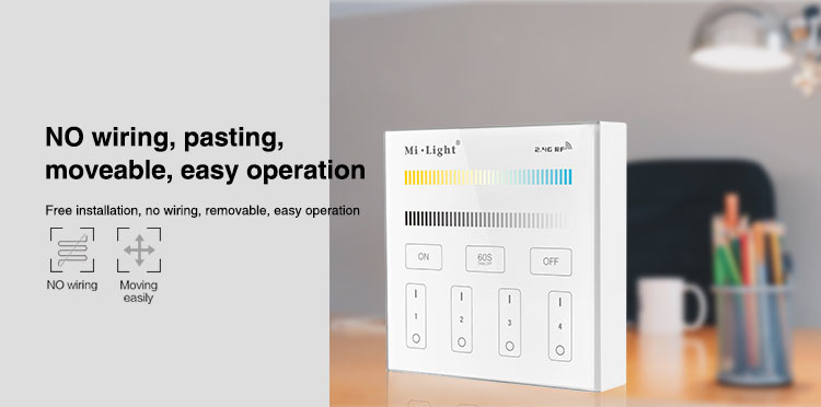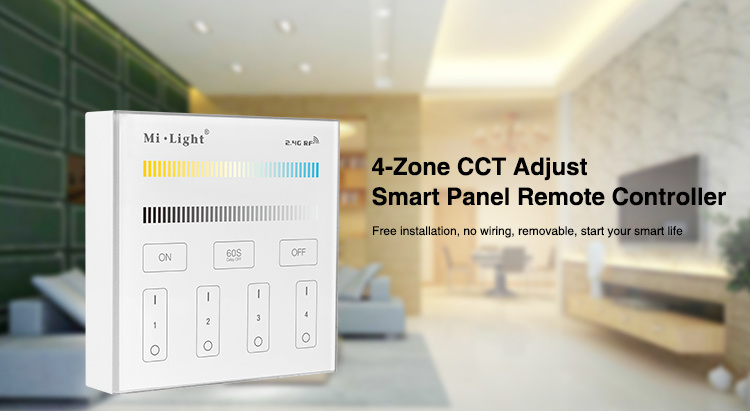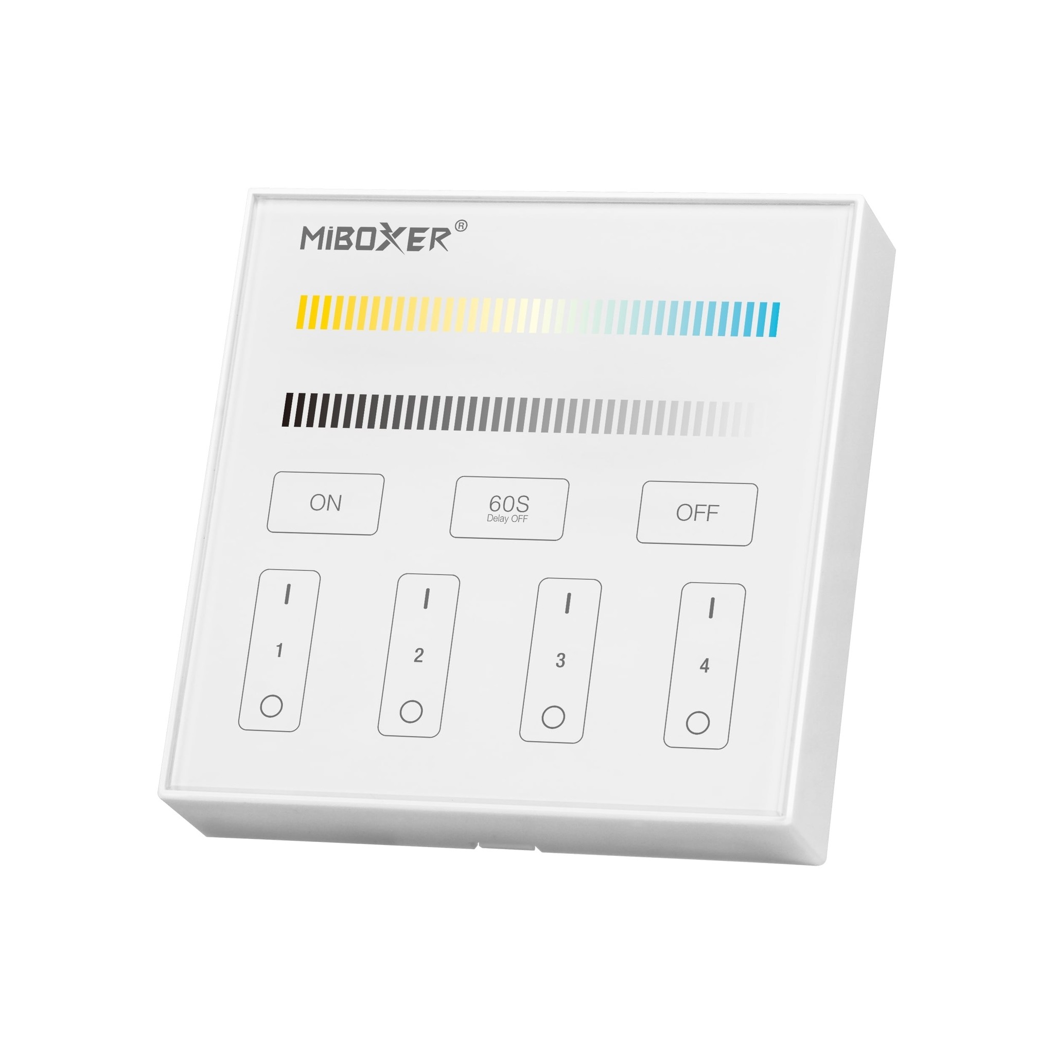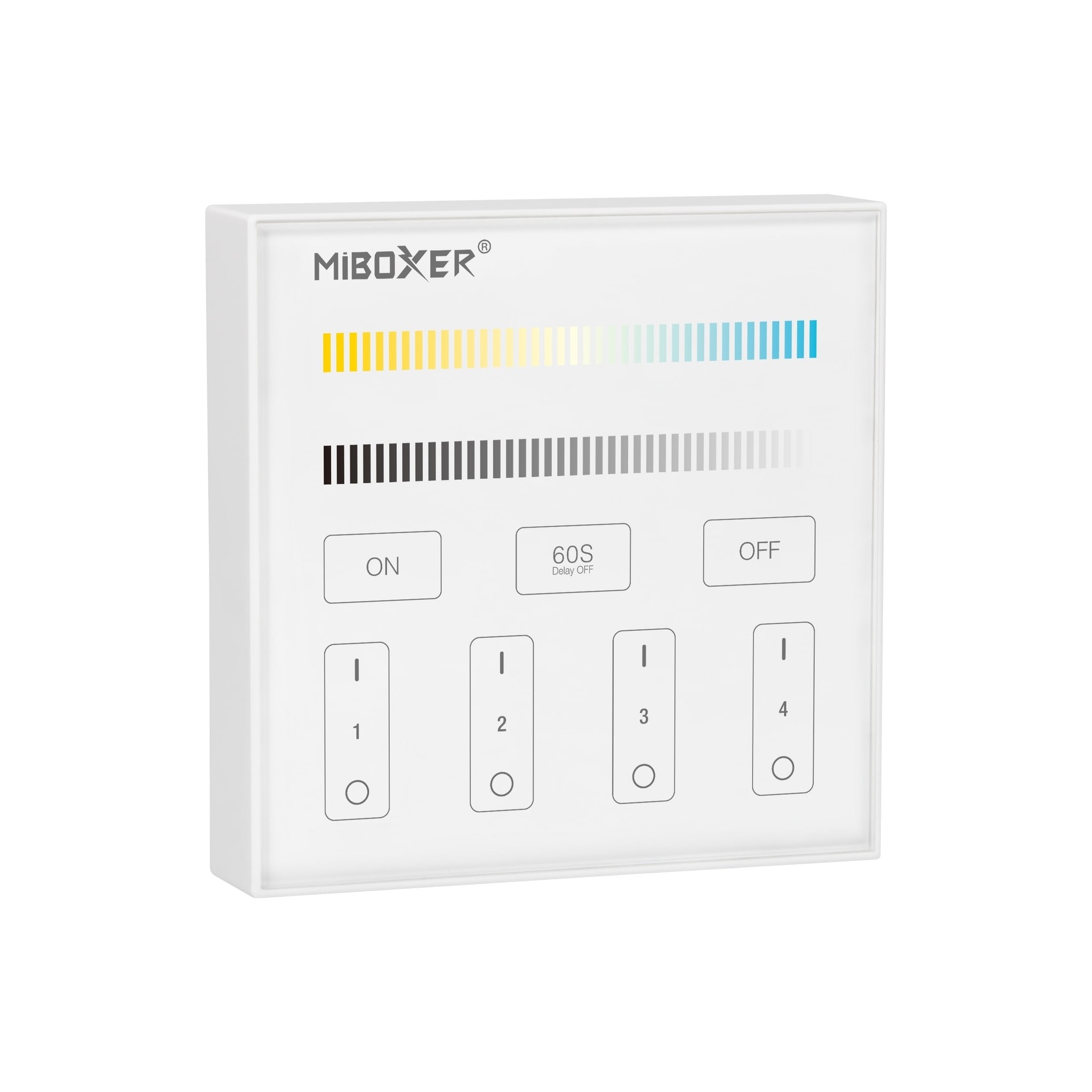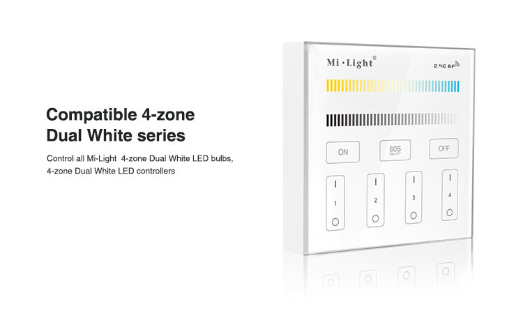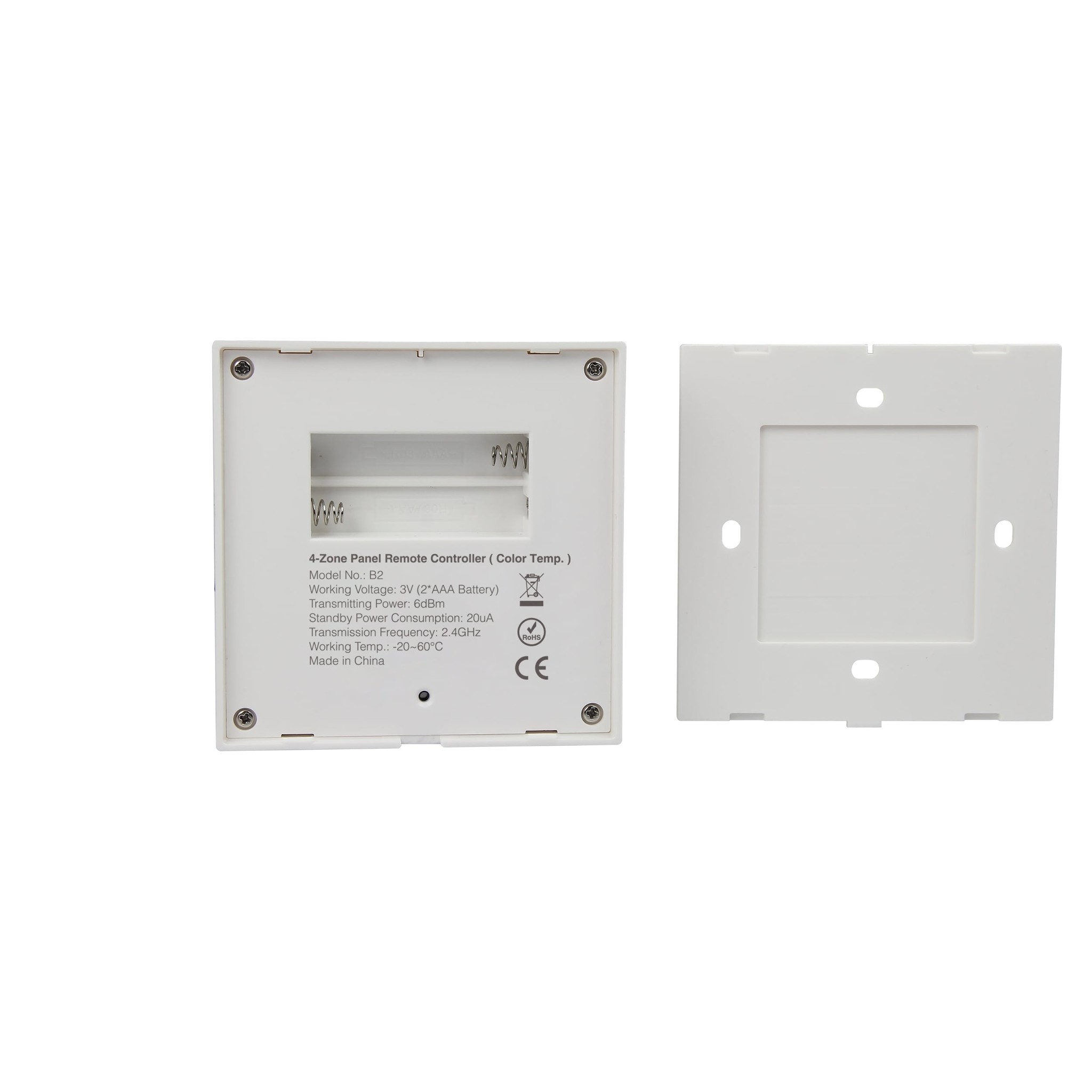 U kunt met deze CCT 4 zone wandbediening: Aan/uit schakelen, Kiezen tussen Warm Wit en Koud Wit licht, dimmen en na 60 second laten uitschakelen