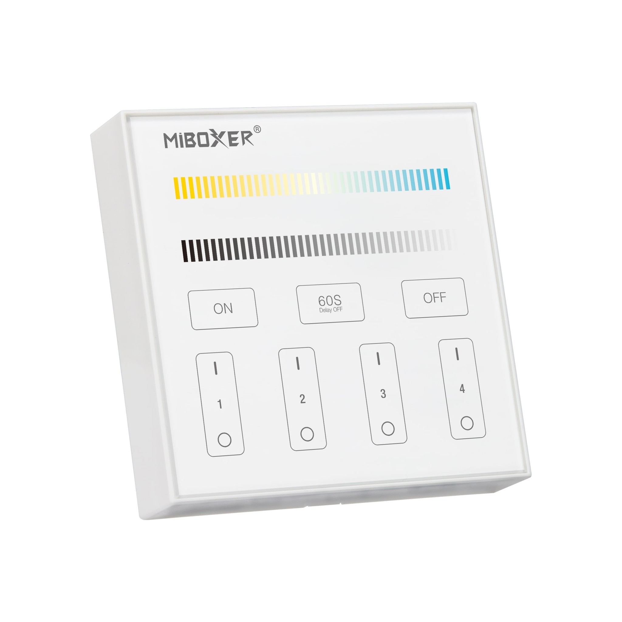 Deze versie beschikt over 4 unieke zones waaraan u een ongelimiteerd aantal CCT LED lampen kan koppelen. Met als resultaat dat u kunt switchen tussen meerdere groepen en zelf de kleur wit kunt bepalen. Overigens kunt u ook alle groepen synchroon bedienen. Zelfs als deze onder zijn verdeeld in alle 4 de beschikbare groepen.