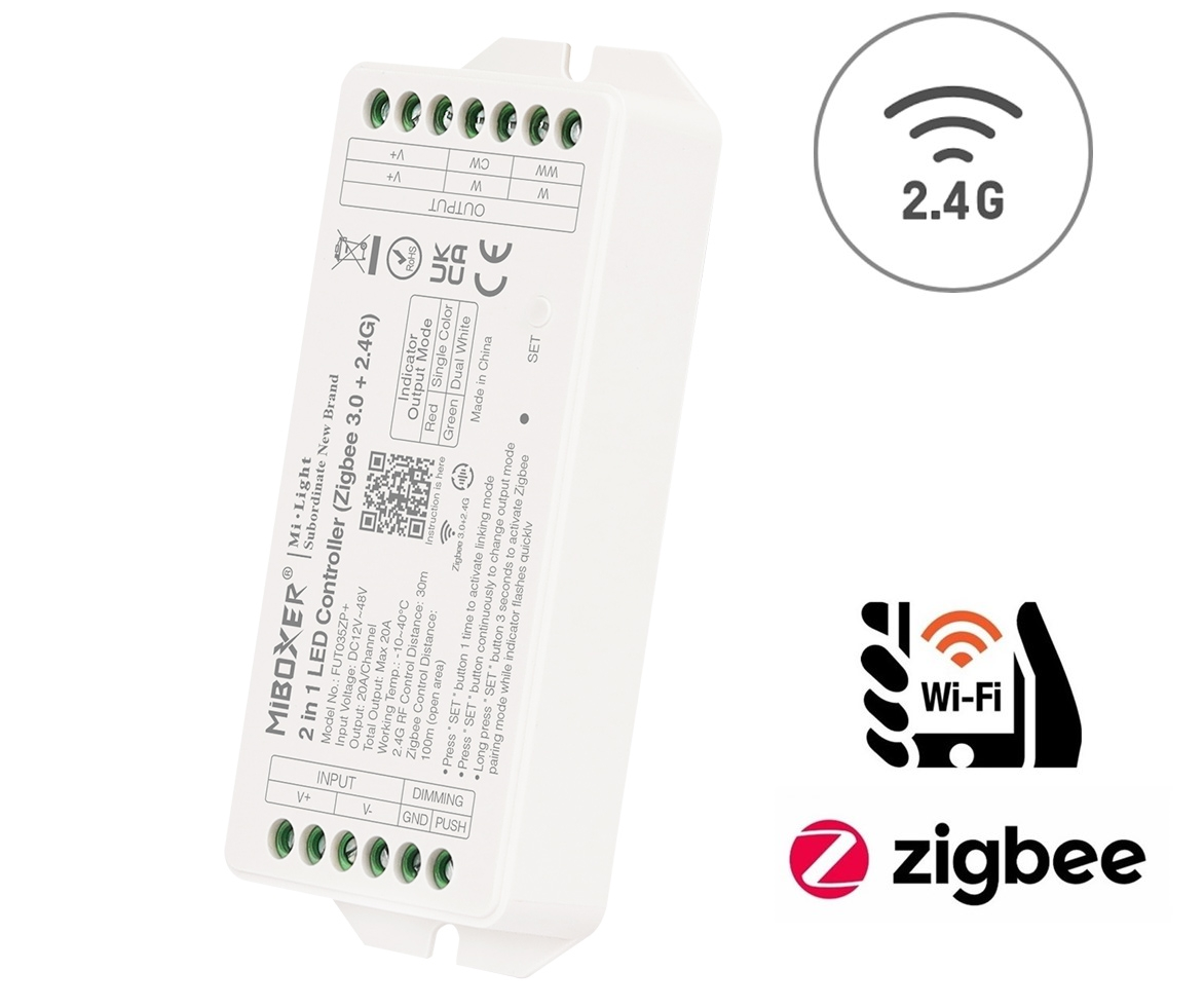 Met deze Zigbee Smart Home LED Strip controller voor single color en DualWhite (CCT) LED Strips kan je ieder gewenste plek in huis je verlichting besturen. Bestuur de Smart Home Zigbee LED Strip Controller op afstand via Wifi en laat zien dat je altijd aanwezig bent. Zodra de Zigbee COntroller gekoppeld is aan de Miboxer Hub of een andere Zigbee 3.0 HUB (bijvoorbeeld Philips Hue of Homey) kan je alles uit je controller halen wat je maar wenst!