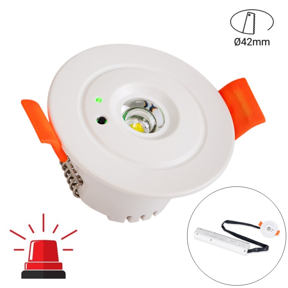 Mini LED Nood Spot/Downlighter Wit, 3w, 250 lumen, Ø42 mm gatmaat, 2 Jaar Garantie
