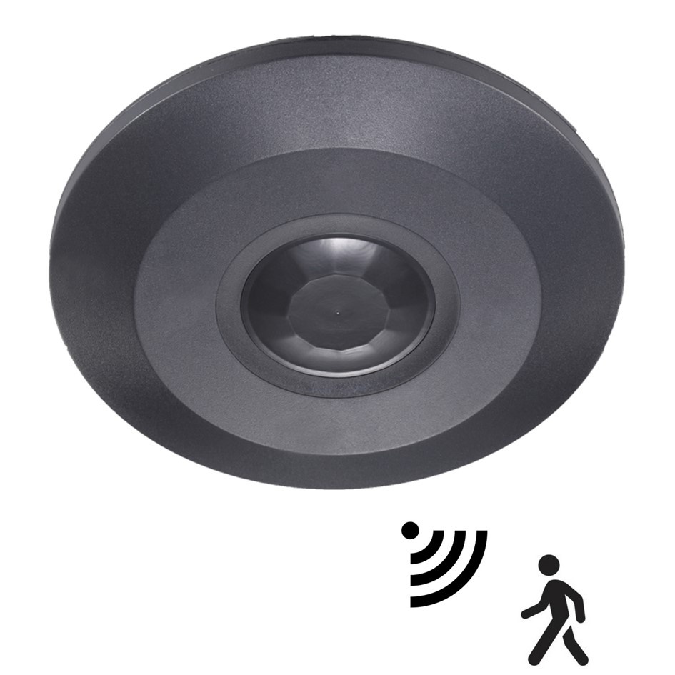 Opbouw Bewegingsmelder Zwart Plat, 360 graden, Max. 2000w, Diameter Ø115mm, IP20, 2 Jaar Garantie