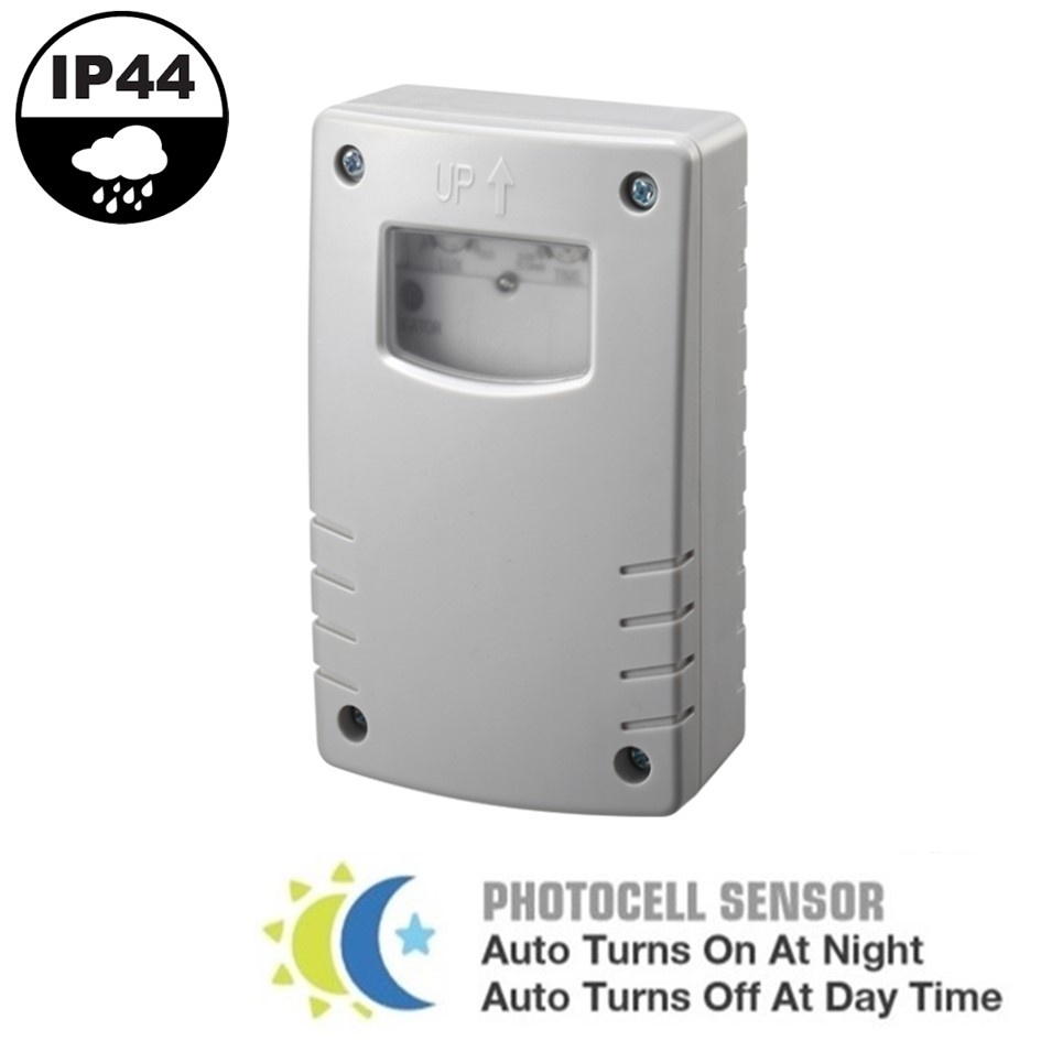 Deze opbouw LED Daglichtsensor is geschikt voor het automatisch aan en uitschakelen van (LED)verlichting tot maximaal 1200w LED of halogeen lampen. Het automatisch aan en uitschakelen gaat d.m.v. instelbare gewenste luxwaarde (daglicht).