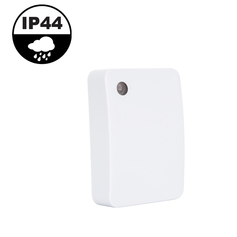Dankzij het compacte design valt de bewegingsmelder niet op wanneer deze gemonteerd wordt aan een gevel. Het armatuur is voorzien van een IP44 normering waardoor het armatuur spatwaterdicht is.