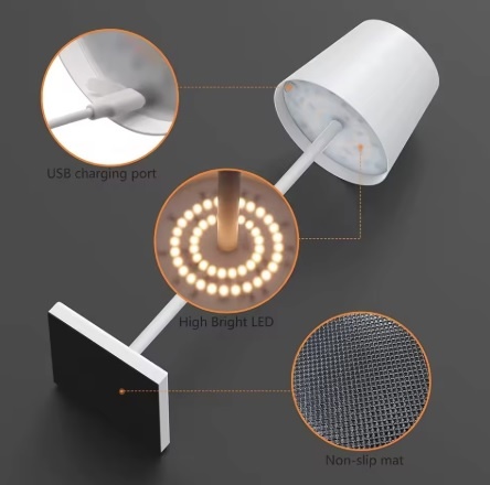Deze LED tafellamp heeft een vermogen van 3,5W met een lichtopbrengst van 400 Lumen. De LED tafellamp heeft een stevige structuur met een ijzeren behuizing en een antislipbasis en is perfect voor in huis, een restaurant, café, op de camping of in de tuin en op het terras te gebruiken
