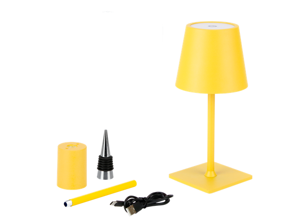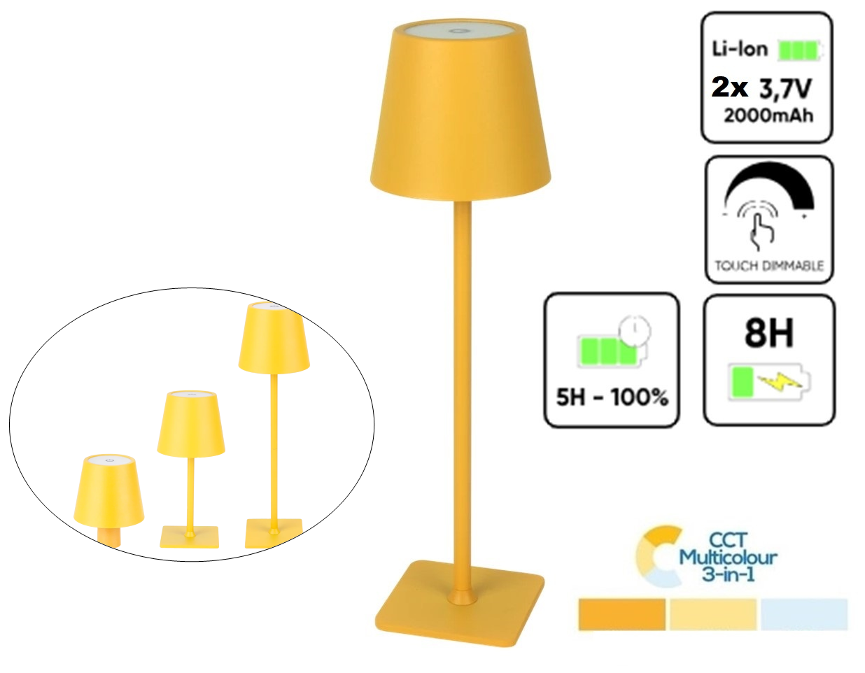 Oplaadbare LED Tafellamp Geel 4 IN 1, 3,5w, 400 Lumen, 2x 2000Mah Li-Ion batterij, CCT Switch 3000K/4000K/5000K, IP54, 2 Jaar Garantie