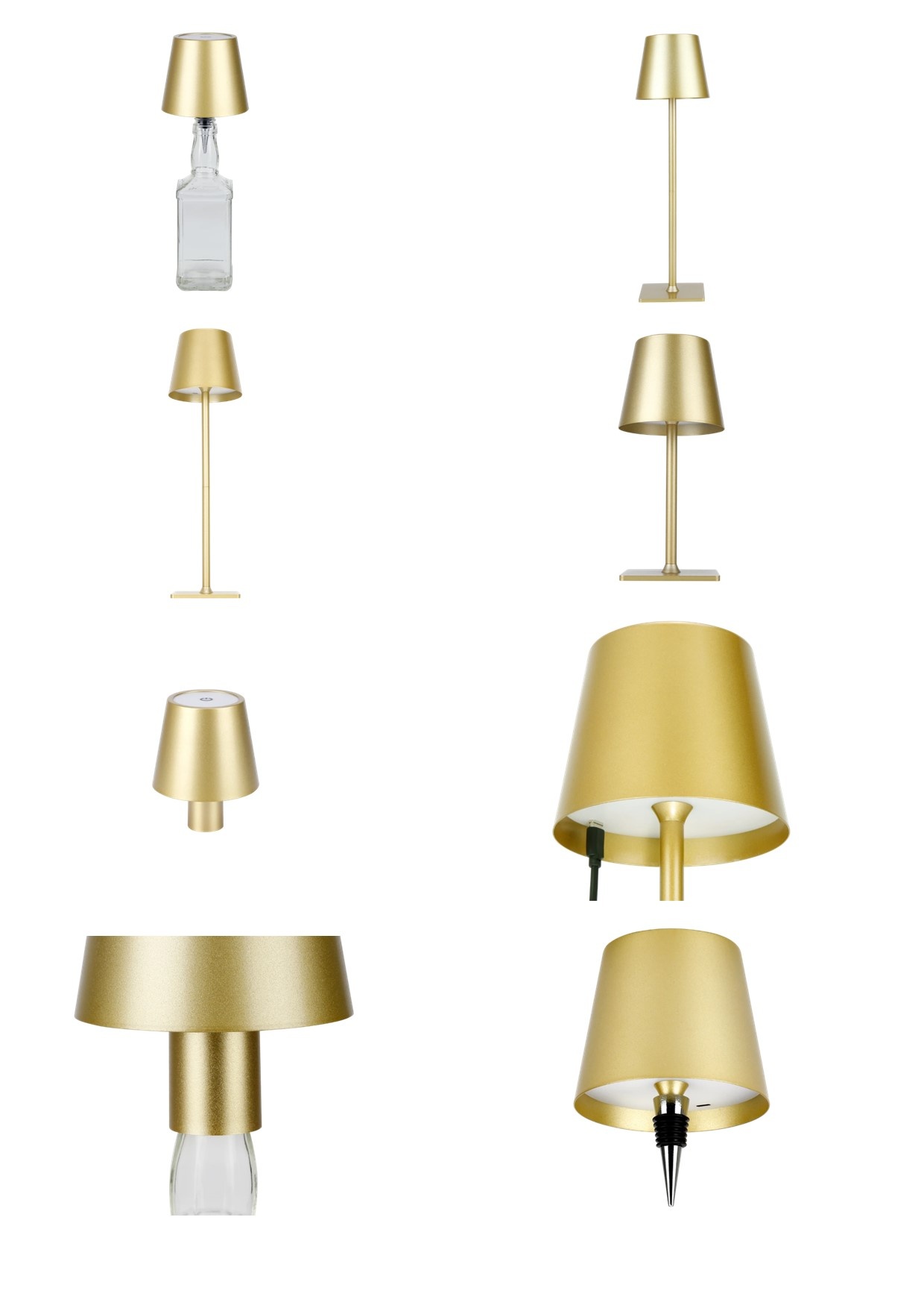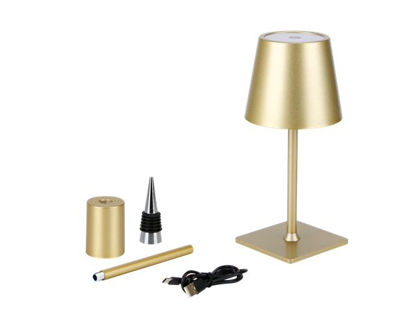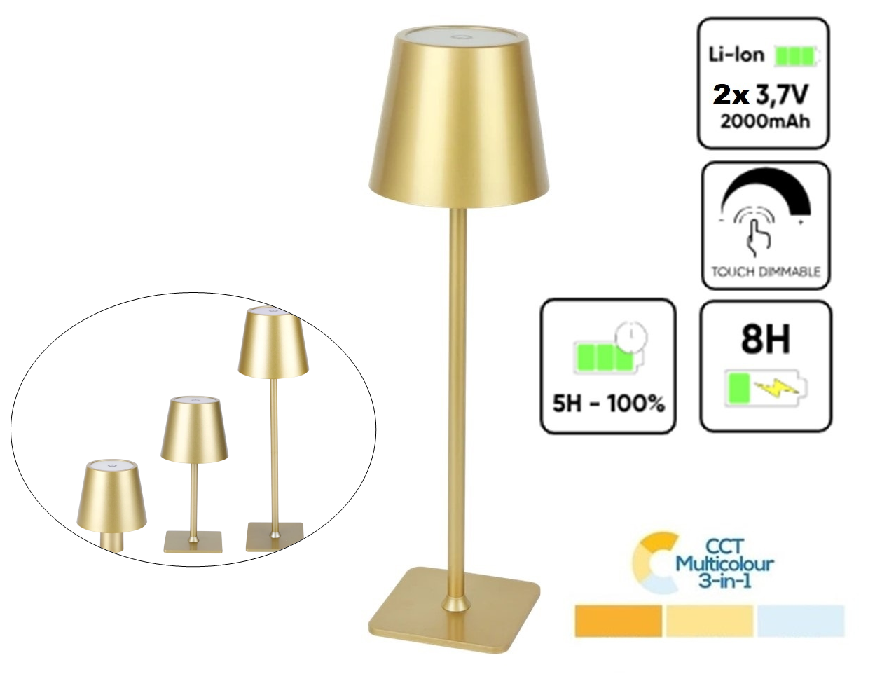 Oplaadbare LED Tafellamp Goud 4 IN 1, 3,5w, 400 Lumen, 2x 2000Mah Li-Ion batterij, CCT Switch 3000K/4000K/5000K, IP54, 2 Jaar Garantie