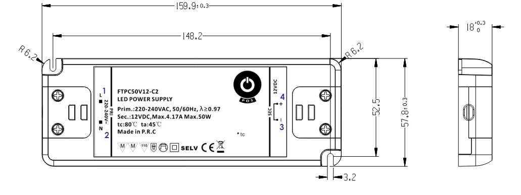 Deze LED strip voeding heeft een maatvoering van 160x58x18mm en is daarom zeer geschikt voor het gebruik in kasten, wanden en plafond met minimale inbouwhoogte.