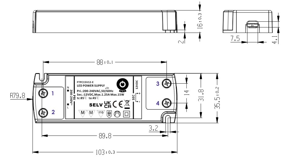 Deze LED strip voeding heeft een maatvoering van 103x36x16mm en is daarom zeer geschikt voor het gebruik in kasten, wanden en plafond met minimale inbouwhoogte.