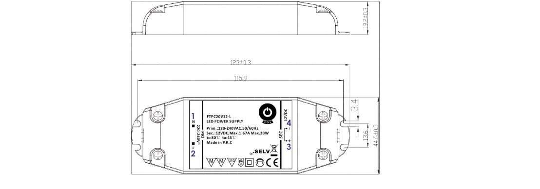 Deze LED strip voeding heeft een maatvoering van 123x45x20mm en is daarom zeer geschikt voor het gebruik in kasten, wanden en plafond met minimale inbouwhoogte.