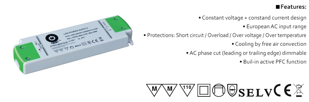 Deze POS Led strip voeding is geschikt voor gebruik op alle soorten 12v DC led strip. De POS LED voeding wordt gekenmerkt door zijn compacte afmetingen, slanke ontwerp en lage gewicht. Hierdoor is toepassing zelfs in de meest veeleisende ruimtes mogelijk. De LED strip voeding voldoen aan de internationale verlichtingsnormen en zijn voorzien van kortsluitings-, overstroom-, overspannings- en thermische beveiliging.