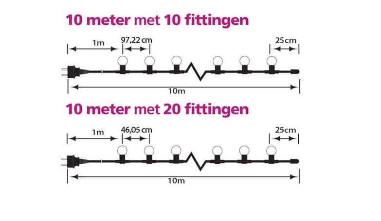 Let op, de prijs van de prikkabel is exclusief LED lampen. Als u ook lampen wilt bestellen dan kunt u ons complete overzicht vinden onder ‘Prikkabel > Prikkabel led lampen’.