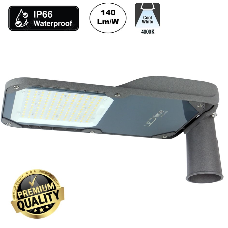 De 100W LED straatlamp is gemaakt van Die-Cast gegoten aluminium en gehard glas, heeft een IP66 beschermingsfactor en IK08 Slagvastheid die de armatuur bestand maakt tegen alle soorten weersinvloeden. De aluminium behuizing heeft een chemisch en mechanisch anti-corrosieve behandeling gehad en is bestand tegen UV-stralen waardoor de duurzaamheid verder verbetert.