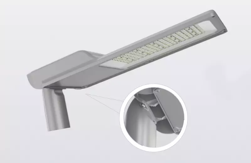 De Voet van de LED Straatlamp kan +/- 15 graden gekanteld worden of in een hoek van 90 graden gemonteerd worden. Hierdoor is de straatlamp zeer geschikt voormontage aan de gevel of op een paal.