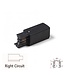 Let op! De betreft een rechtse aansluitblok. Wanneer de stroompunt van de rail rechts bevindt, heb je een rechtse aansluitblok nodig.