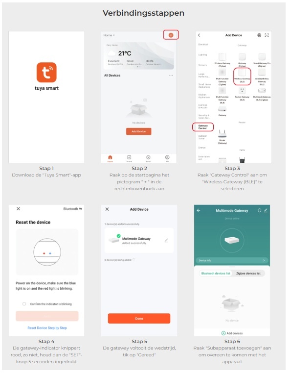 Deze Zigbee Hub werkt via het Tuya Protocol. Op de Tuya Smart App is het mogelijk om de Zigbee ontvanger te koppelen. Hierdoor is het mogelijk om Zigbee lampen of artikelen werkend op het Zigbee 3.0 protocol van meerdere fabrikanten te koppelen op 1 App.