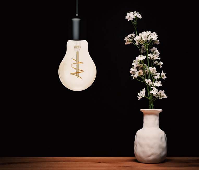 De warme 2200k flame lichtkleur in combinatie met de zeer dunne draai filament en de goudkleurige glas, ontstaat er een zeer sfeervolle belichting.
