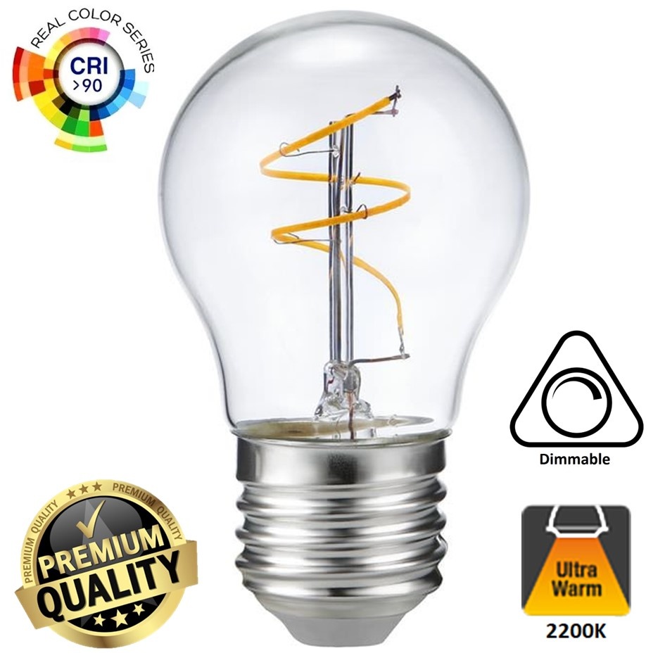 Deze Premium Line decoratieve vintage E27 3,2w LED Bollamp heeft een zeer fijne 2200K extra warm witte lichtkleur. Met een hoge lumen 100lm/w verhouding geeft de bollamp een lichtopbrengst van 320 Lumen. Met deze lichtopbrengst vervangt de lamp een 30w halogeenlamp.