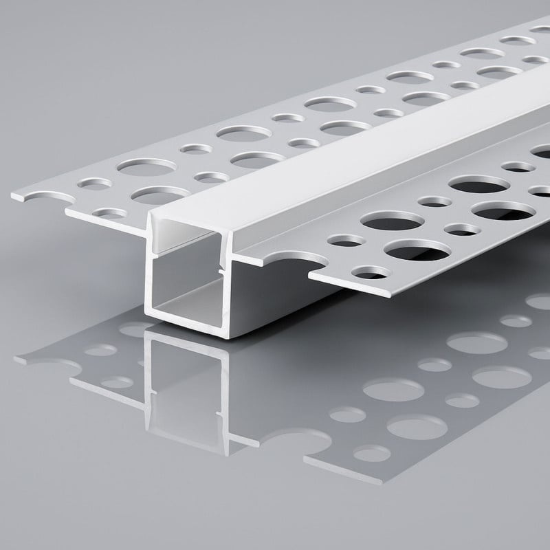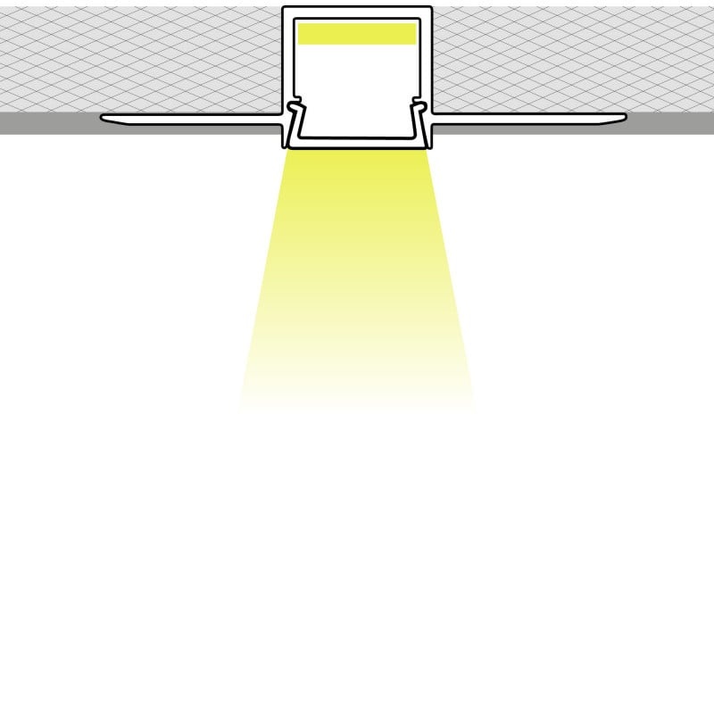 De Stuc LED strip profiel kan als inbouw profiel gebruikt worden. Waarbij je het profiel verwerkt in je gipsplaat en afwerkt met een stuclaag rondom het profiel. Je krijgt dan een strakke lichtlijn horizontale of verticale lichtlijn op je muur of plafond.