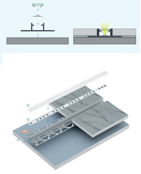 De tegel LED strip profiel is geschikt voor gebruik in combinatie met 8mm,10mm en 12mm LED strips met IP20 of IP65 normering. Kan gebruikt worden in keuken, slaapkamer, badkamer en woonkamer.