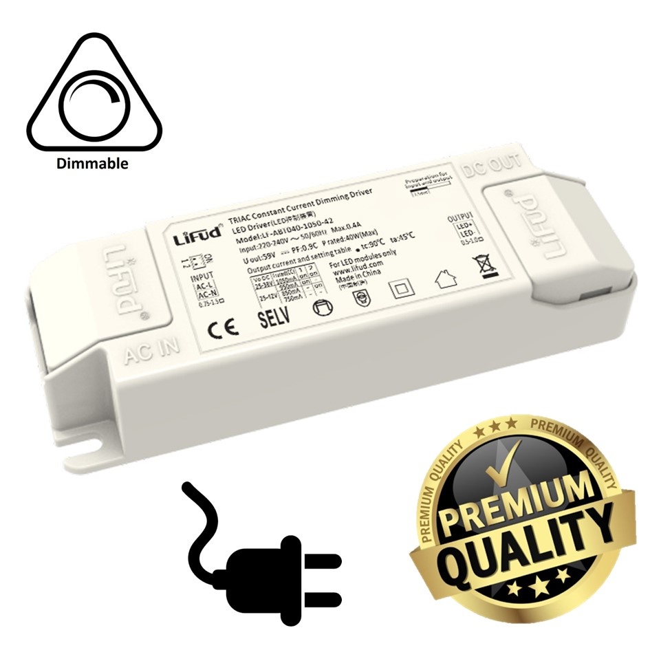 Deze Lifud Triac dimbare LED Driver kan gebruikt worden op LED Panelen met een verbruik van 28 tot 40w , een Mah van 700 tot 1000 Mah en uitgaande voltage 26-40v.