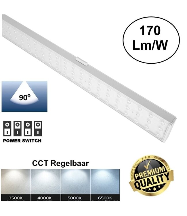 De universele Trunk Lichtlijn met extra hoge lichtopbrengst maakt het mogelijk om bestaande lichtlijnsystemen te voorzien van led verlichting. De universele lichtlijn kan plug & play in het bestaande lichtlijnsysteem worden geklikt. Het armatuur is uitgerust met een Philips Xintanium flash free dip-switch led driver waarmee je de wattage in kan stellen tussen de 70 en 130 watt. De zeer krachtige en leds met hoge lumen output max 22100 Lumen (160-170Lm/w) zorgt voor voldoende lichtopbrengst op plekken waar meer licht gewenst is.